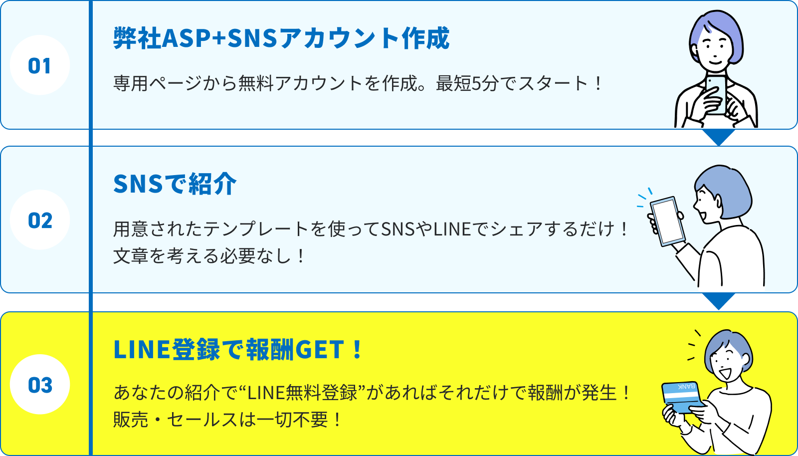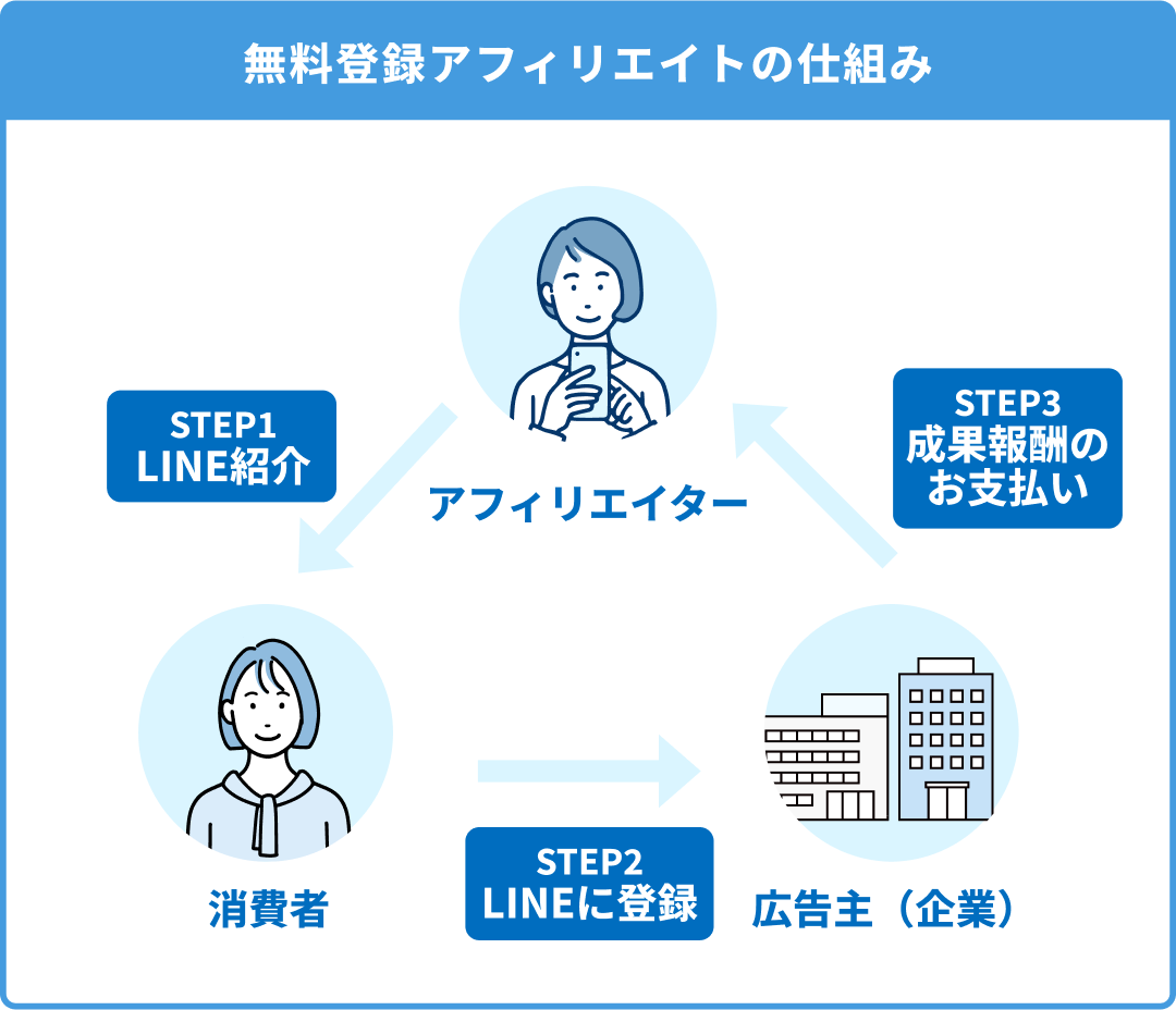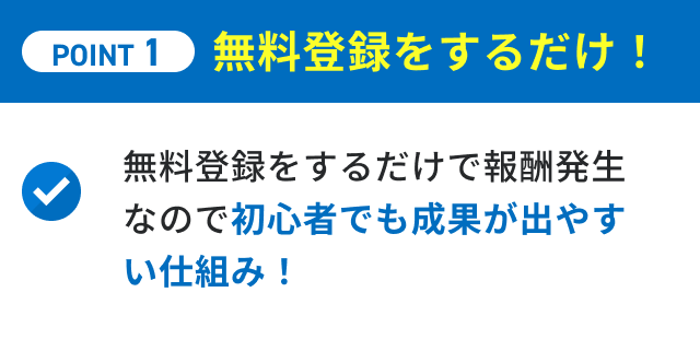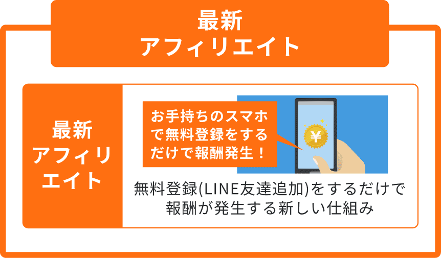 一般的なアフィリエイトが「商品を売って報酬を得る」のに対し、最新アフィリエイト「無料登録」だけで報酬が発生する新しい仕組みです。