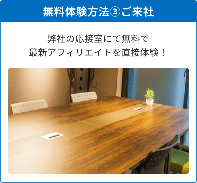 無料の資料ご請求後に、お客様のご希望に応じて、最新アフィリエイトの無料体験をすることができます。