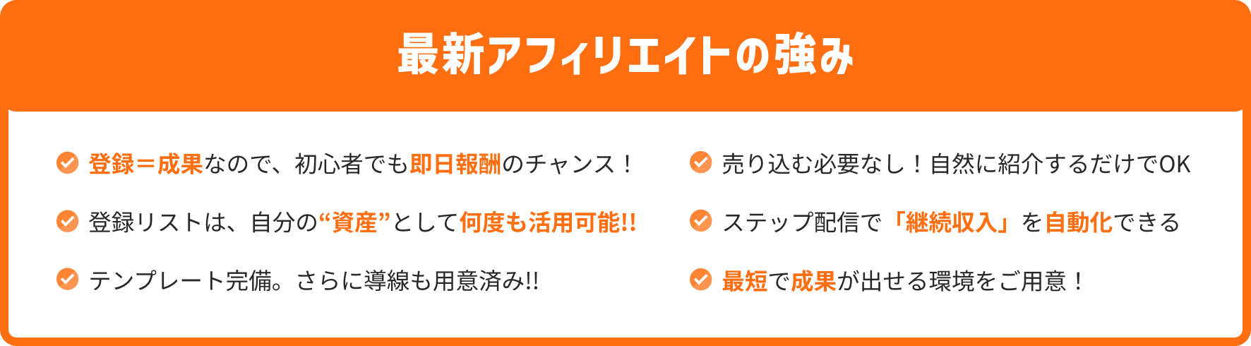 • 中でも、弊社独自の最新アフィリエイトは、初心者でも再現性が高く、継続的に収益を得られる設計になっています。